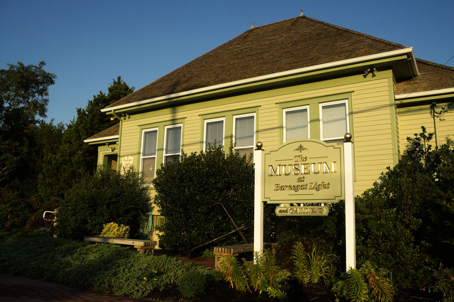 Several blocks away is the Barnegat Light Museum, operated by the Barnegat Light Historical Society. It houses the light's original first-order Fresnel lens, as well as related exhibits including images of Sinbad, the WWII Coast Guard dog who was enlisted in the service, retired to Barnegat, and is buried at the base of the old Coast Guard station flagpole.